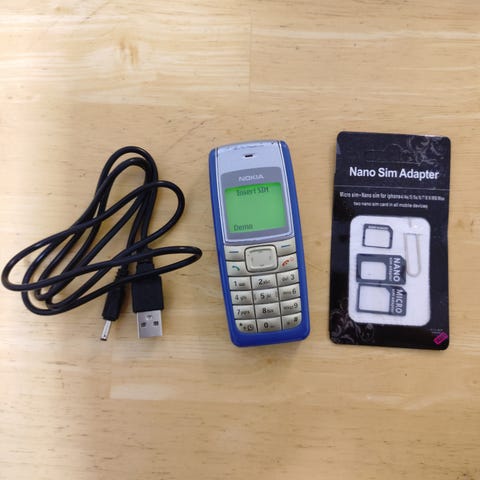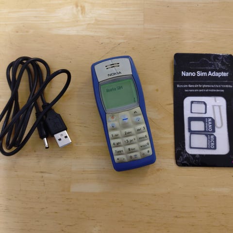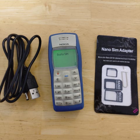 Nokia 1110 Puhelin Latauskaapelilla ja SIM-adapterisarjalla