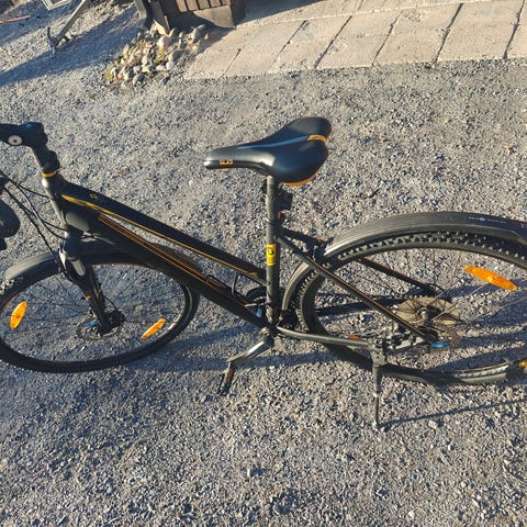 Muutamat kolhut, jotka näkyy kuvissa. Muutaman kerran ollut käytössä. Tasainen polkea, ei vemppaa.
