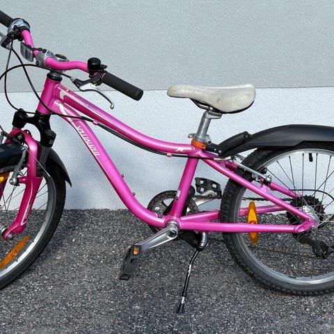 Specialized Jett lastenpyörä, 20" renkaat. Runkomateriaali metallia, väri viininpunainen. Pyörässä on käsijarrut, vaihteet, lokasuoja takana, seisontatuki sekä heijastimet. Soveltuu lapselle, joka käyttää 20 tuuman rengaskokoa arkiajoon ja harrastekäyttöön. Kaatumisen seuraksena istuin ottanut hieman osumaa asfalttiin (viimeinen kuva), muuten erittäin hyvässä kunnossa ja vaihteet toimivat.