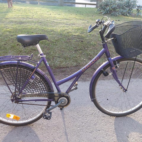 Pyörässä lisäksi soittokello, pitävät kädensijat, lokasuojat, ketjusuoja, tarakka kiinnikkeellä sekä seisontajalka.
