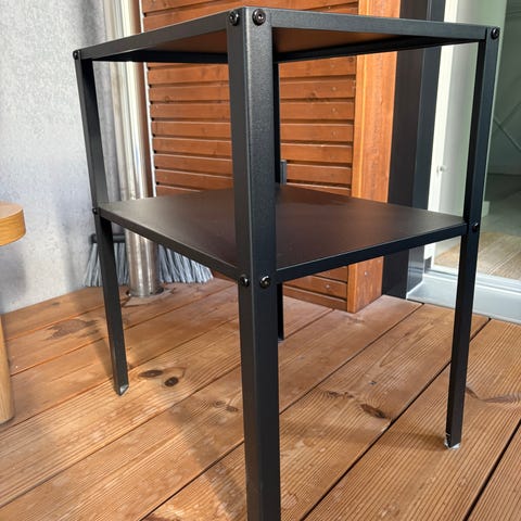 A handy little nightstand or in the corner of the sofa. The open shelf is good for small items and the cabinet for books. The table is sturdy.