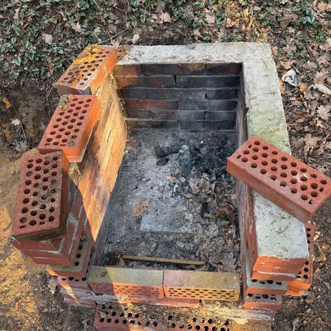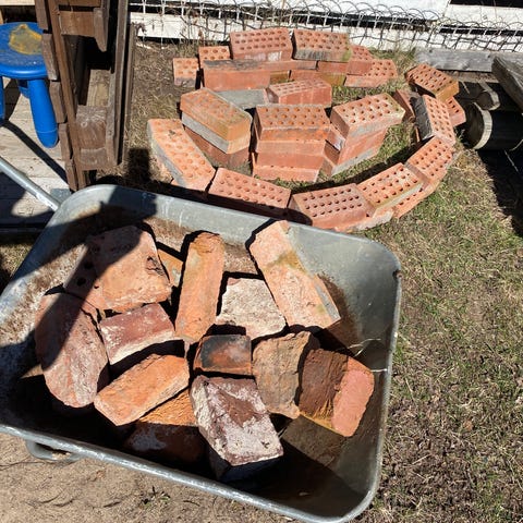 Hormista purettuja tiiliä, autolla pääsee toistaiseksi viereen.