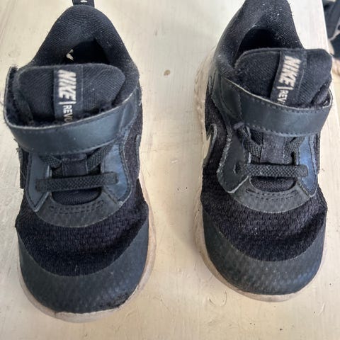 Mustavalkoiset Nike Revolution 7 lenkkarit kokoa 26. Viime kesän yhdellä lapsella käytössä olleet kengät.