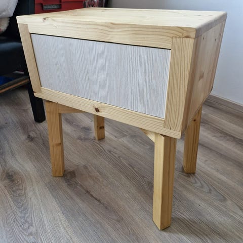 Varattu 23.4 asti. Pieni pöytä, joka soveltuu esim lapsen yöpöydäksi. Korkeus 45cm, syvyys 42cm ja leveys 20cm.