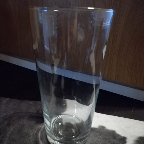 lasimaljakko, kirkas lasi. Korkea, sylinterimäinen muoto ja yläosassa levenevä reuna. Maljakon pohjassa koristeellisia ilmakuplia. Sopii esimerkiksi leikkokukille tai sisustuselementiksi pöydälle tai ikkunalaudalle.kanerva