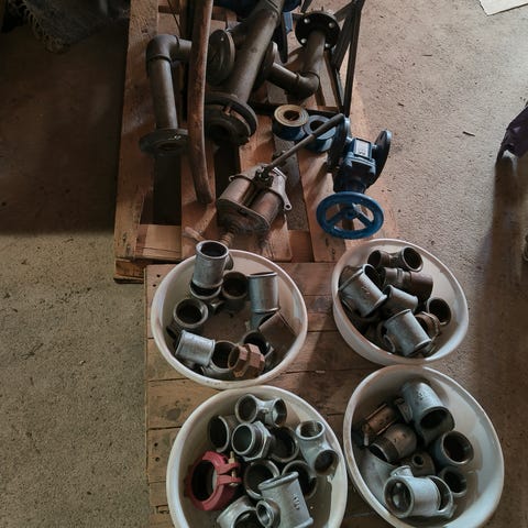 Laatikollinen messinki osia kulmia , t haaroja, ym ja 1 1/4 sulku , 1 1/2 sulku, ja 2" sulkuventtiili.