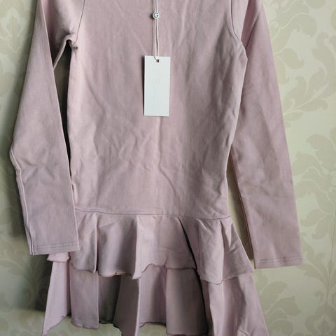 Gugguun ihana beige frillamekko, koko 128. Vähäisellä käytöllä ollut. Pieni haalea tahra helmassa, ei ole yritetty poistaa.