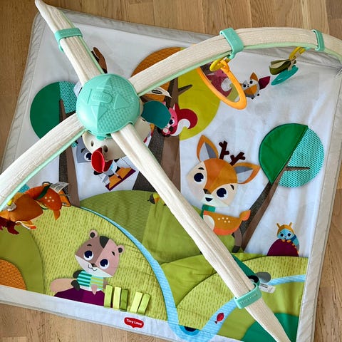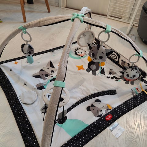 Tiny Love leikkimatto maatila kuvalla. Muutamia erilaisia leluja mukana.
