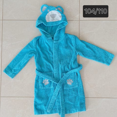 Finlayson lasten kylpytakki, koko 3/4, 92-104cm. Unisex-mallinen kylpytakki, jossa valkoinen pohjaväri ja apina kuviointi. Materiaalina puuvilla. Kylpytakissa on huppu, etuvetoketju ja etutaskut.