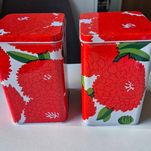 Myydään settinä kaksi (2) Marimekko Primavera metallipurkkia, sininen. Olleet koristeena, ovat siis kuin uudet.