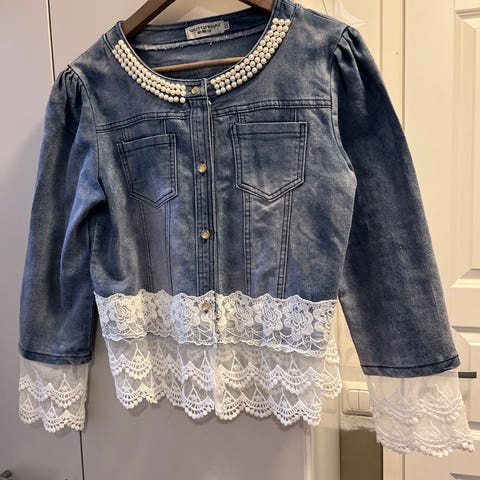 Shana farkkutakki naisille, kokomerkintä L, mutta vastaa kokoa M.