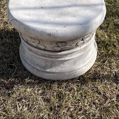 Betonijalka, joka on ollut sulkapalloverkon tolpassa. Korkeus 50cm, kapenee hiukan. Alhaalla 18x18cm ja ylhäällä 15x15. Reikä 60-85mm, riippuen supistajien määrästä. Reikä läpi, joten sopii myös ankkuriksi veneen poijun ketjulle. Paino about 25kg.