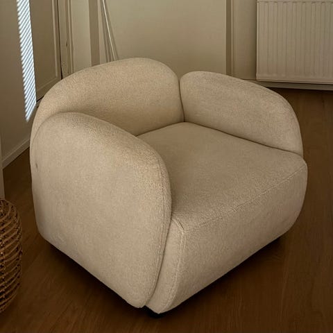 Ihana laiskanlinna. Pitkään palvellut. Raikkaat värit pysyneet. Toisen käsinojan kangas rikki. En ole yrittänyt paikata tai muuta. Kannattaa myös miettiä uudelleen verhoilua. Tosi hyvä istua. Tilava. Pesty tekstiilipesurilla.
