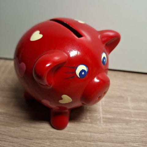 Käyttö: Säästöpossu, jossa on kolikkoaukko selässä