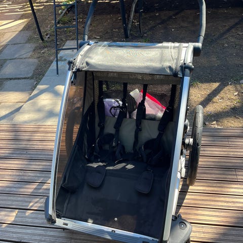 Thulen Chariot Cheetah XT 2 erittäin hyväkuntoiset ja vähän käytetyt kahden lapsen istuttavat pyöräilykärryt, joita voi käyttää myös lastenrattaina. Säilytetty aina sisävarastossa. Myynnissä myös muualla.