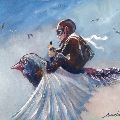 Teos on epäilemättömän mielikuvituksen ja uskalluksen kunnianosoitus tavoitella mahdotonta. Taiteilija on mestarillisesti välittänyt liito-kunnian? dynamiikan sekä höyhenten ja pilvien pehmeyden, käyttämällä vaimea, melkein pastellimainen sinivalkoinen paletti sinisiä ja harmaita, kontrastaten lämpimiin ruskeisiin pilotin asun. Tämä teos tuonee jokaiselle tilalle rauhaa ja ripauksen taikuutta.– Tekniikka: öljy kankaalle– Mitat: 40 × 30 cm– Allekirjoittanut taiteilija– Tila: uusi, valmis ripustettavaksiTaiteilijasta – Artur SudakSyntynyt vuonna 1965. Taiteilija maalari, itsetidottu, graafikko.Valmistui maalaus- ja piirustusjakso Curso Práctico de Dibujo y Pintura Larousse. Hän työskentelee monissa tyyleissä, mutta erityisesti läheisiä ovat realismi, romantiikka sekä klassiseen estetiikkaan pohjautuva École des Beaux-Arts -perinne.Tilillä on yli 2000 teosta, jotka sijaitsevat pääasiassa yksityiskokoelmissa sekä Suomessa että ulkomailla.Valittuja näyttelyitä:2019 – yksityisnäyttely Bolkówin linn MuseuessaTouko 2022 – ulkoilmanäyttely, Wilanówin taidekeskusTouko 2023 – avajaiset “Nic o sobie, czyli sur-realisme, alla prima”, Wilanówin taidekeskus, VarsovaPakkaus ja toimitusTeos pakataan huolellisesti kuljetusta varten:- suojattu tukevassa pahvilaatikossa.Toimitukseen liitetään aitoustodistus.