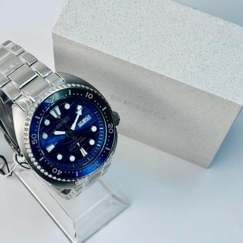 —// INTRO //—*** " Blue Lagoon - Limited Edition, Only available in Southeast Asia ******Rare Made in Japan "J Version", which is only available in a few parts of Asia only. Mostly are K versions, which are made in Southeast Asia***—// DESCRIPTION //—Model: Seiko Prospex SRPB11J1 Blue Lagoon Turtle Men's Diver Automatic Watch SetMaterial: Stainless SteelDial Color: Torquise BlueDial Size: 44mm (without crown)Fitting: 16.5cm wrist. 3 extra links to extend 3.0cm. Movement: Seiko 4R36 automatic movementPower Reserve: 40 HoursFunctions: Time Keeping, hacking, manual and automatic winding, diver's rotatable bezel, luminous hands and hour indexes, hacking, luminous hands and hour indexes, screw-down crown. —// DELIVERY CONTENTS //—Original Box: Yes *(Seiko box, as shown in pictures)Original Papers: Yes *(guarantee card and booklet, manual)—// CONDITION //—Wear on Case: None / Insignificant *(Close to flawless condition)Wear on Caseback: Insignificant / Minor *(with minor wears on the caseback, hairlines and such)Wear on Crystal: None / Insignificant *(Close to flawless)Wear on Dial: NoneWear on Hands: NoneWear on Bezel: InsignificantWear on Crown: None / Insignificant Wear on Bracelet or Strap (Fitting stated above) : Insignificant (12 links attached with no extra links, Seiko S/S bracelet. Minimal hairlines)Wear on rubber straps: Minor *(Seiko Z22 rubber straps, with light scratches on the metal buckle and keeper, minor wear on the rubber)CONDITION RATING STANDARD:None (Best) —> Insignificant —> Minor —> Medium —> Heavy —> Damaged (Worst)— // OVERALL RATING //—RATING: A+RATING GUIDELINE:N [As Brand New] Item has never been usedS [Superior] Item has like-new condition, with very slight to no signs of wear.A+ [Excellent] Item has been lightly used. Mostly hairline marks.A [Great] Item has slight scratches and wear, but looks greatB+ [Good] Item has scratches and moderate signs of wear.B [Fair] Item has scratches and dings all over. Still in good working condition.V [Vintage] Item is more than 10+ year old and used heavily. Signs of wear everywhere, but functionalND [SALVAGE] Item is non-functional. Needs repair or for parts only.—// SHIPPING METHOD //—SHIPPER: FedEx Economy—[[[ NOTES TO CUSTOMERS ]]]—[PHOTOS]- All photos are not retouched (except for serial numbers hidden for security reason). Any defects not mentioned in the description but visible in the pictures will be considered as described. Pictures speak a thousand words, so we kindly ask you to look at the pictures carefully before bidding as they form an integral part of the description. I value my relation with customers so I do not want to become your disappointment when items is received with undesirable results.[ACCURACY]- Accuracy is tested on every watch at horizontal position (dial face up) at fully wounded power reserve and is deemed satisfactory for keeping time before sending out of our shop. Some factors which might affect accuracy include length of time worn on the wrist, arm movement, and tension on the power spring. Watches that are more than 10 years old might experience a larger accuracy variance and inconsistency because of mechanical wear.[AUTHENTICITY]- All watches I sold are authentic. I try to label all aftermarket parts which I can identify and at the best of my knowledge. Please evaluate the item accordingly to the pictures as they are taken from the actual item you will be receiving. Written description is only for auxil