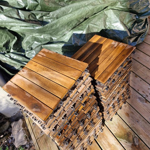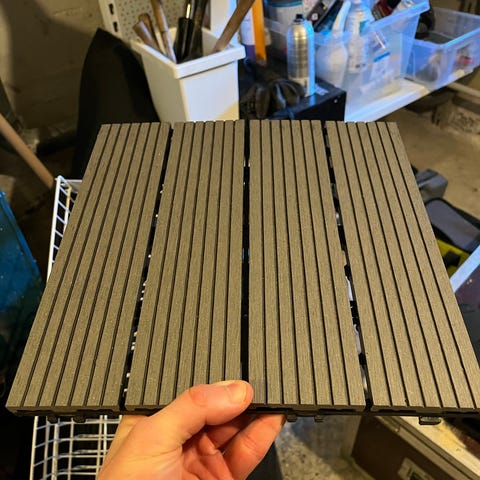 Puiset parvekelaatat, 8 kappaletta. Yhden laatan koko 50 cm x 50 cm. Olleet lasitetulla parvekkeella, ok kuntoiset, pientä likaa voi olla.