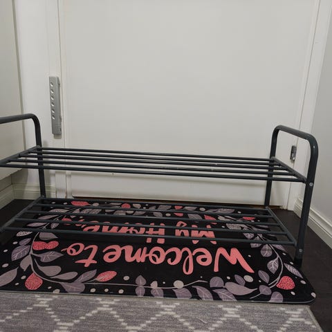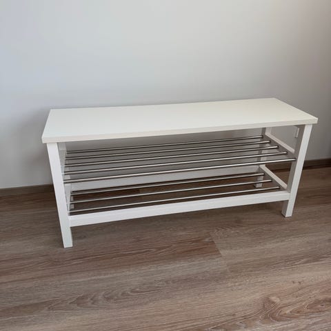 Hieman elämää nähnyt, mutta ehjä ja siisti kenkäteline.