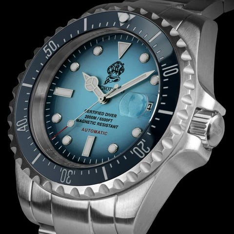 Tecnotempo on italialainen brändi ja rekisteröity tavaramerkki.Tecnotempo on Italian brändi, joka yhdistää laadun ja muotoilun jokaiseen kelloon niille, jotka arvostavat ajattoman tyylin.Jokainen malli, korkealaatuisista osista tehty, edustaa täydellistä kohtaamista perinteen ja innovaation välillä, niille jotka elävät aikaa tyylillä.Tässä huutokaupassa tarjoamme:Tecnotempo Professional Diver 200 ATM WR "Diving Helmet" - Edizione Limitata 300 kappaletta -uusi malli 316L-teräksisestä kotelostaUusi, tagin kanssa, laatikossa ja 2 vuoden virallinen takuuTecnotempo-kello on valmistettu ensiluokkalaisista osista:- 316L-teräksinen kotelo- Luotettava Japanilainen automaattinen TMI nh35 -liike (24 jalokiveä, 41 tunnin akkuvirta maksimivaihteella)- Yhden suunnan kiillotettu sininen keraaminen bezel, 120 kliks- Gradienttinen dial- 2000 metriä / 6500 ft vesitiivis- Automaattinen Helium Release Valve- Antimagnettinen- Paksu (4,5 mm) safiirilasi- Päivämäärä linssillä (välttää mahdolliset vahingot kellomekanismille, älä vaihda päivämäärää manuaalisesti kruunulla, jos kellon aika on klo 20:00–03:00; tämä sääntö koskee kaikkia päivämääräkelloja)- Ruostumattomasta teräksestä valmistettu ranneke, extended for wetsuit- RAJOITETTU ERÄ 300 KPL.- Kruunun kiinnitys kaksinkertaisella tiivisteellä ja takakansi- Kotelon halkaisija: 45 mm (ilman kruunua)- Kotelon paksuus: 20 mm- Rannekkeen leveys: 22 mm-20 mm- Vesitiiviys: 200 ATM / 2000 metriä / 6500 jalkaa- Kellon ympärysmitta noin 23 cm- Paino noin 300 g- Pakkauksessa yleisohje (englanti/italia), 2 vuoden virallinen takuu- Tuotteet pakataan huolellisesti ja lähetys Italiasta kuriirilla (seurattavissa ja vakuutettu)