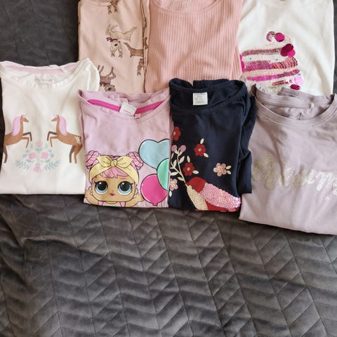 Paljon pidettyä mutta ehjää ja puhdasta vaatetta, tästä yli puolet kesävaatetta. Kokometkinnät lähes kaikissa 122/128 cm.