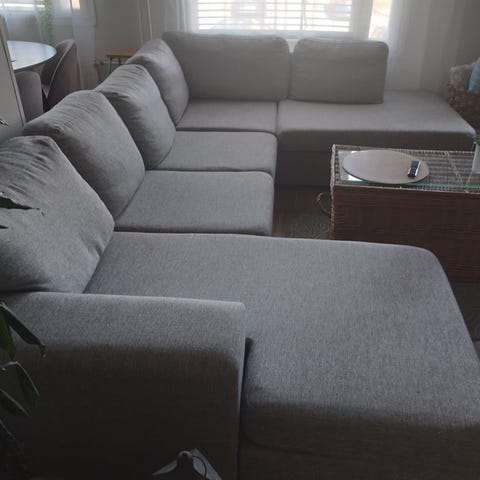 Muuten ehjä ja hyväkuntoinen, paitsi kaksi repeämää vuodesohvaosassa – katso viimeinen kuva.