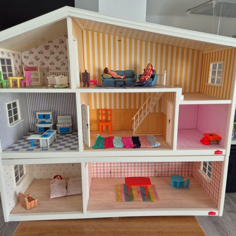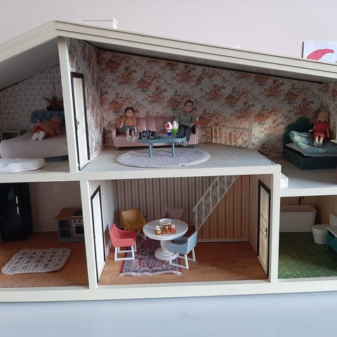 Hyvä nukkekoti kalusteineen