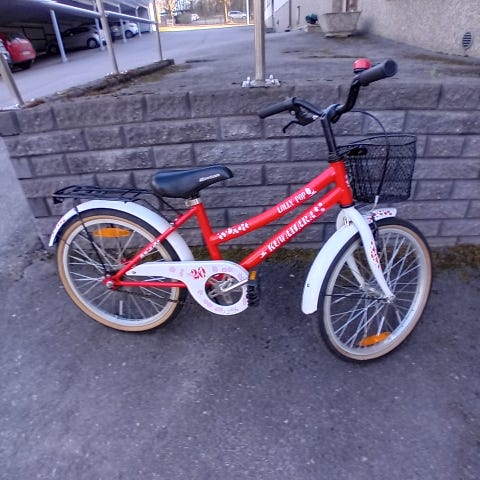 20"tuumanen lastenpyörä, joka on useammalla lapsella ollut. Toimii, mutta voi vaatia pientä laittoa. Vain nouto. Mekki: Kuwahara