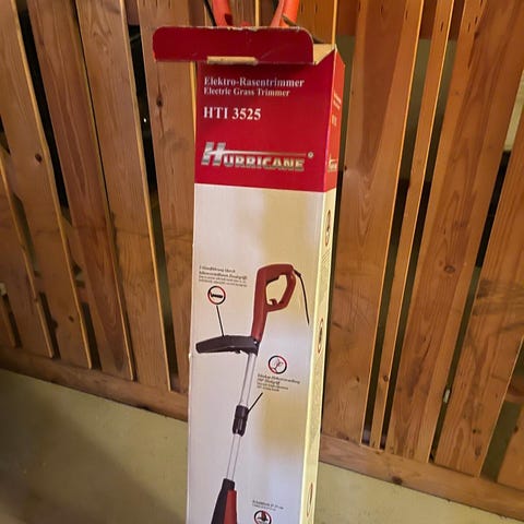 Hurricane trimmeri nurmikon reunojen siistimiseen. Sähkökäyttöinen, vaatii pidemmän johdon.