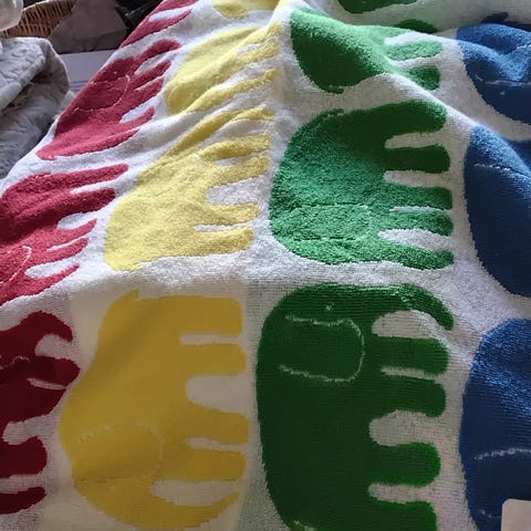 Ihanan Elefantti kylpyyhkeen kuvion suunnitellut Laina Koskela. Erittäin laadukkaasta kerratusta puuvillalangasta kudottu Jaguardpyyhe on , kevyt, imukykyinen, lyhyt kuivumisaika. Käy kaikille. Miellyttävää pehmeeää puuvillaa. Voin tarvittaessa lähettää pyhkeen.