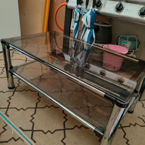 Ikean pieni lasipöytä. Vittsjö. Katkaistua lasia.