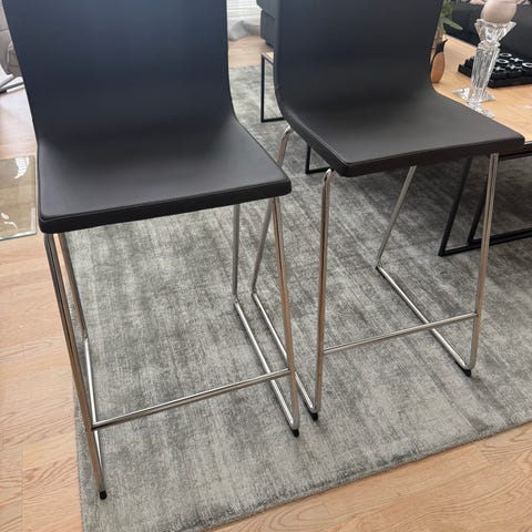 Tuoleissa on havaittavissa pieniä käytön jälkiä ja istuimissa pintalikaa, mutta ne ovat yleisesti hyvässä kunnossa. Toisesta puuttuu yksi muovitulppa alta.