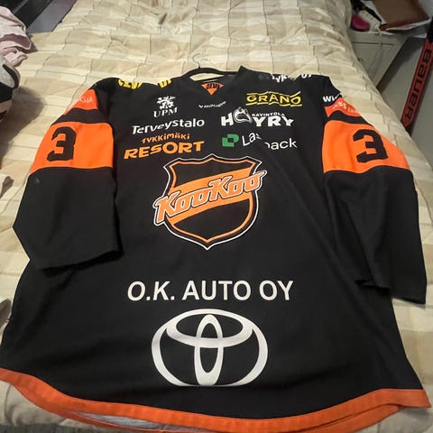 KooKoo Nick Malikin käyttämä liiga game worn pelipaita kaudelta 2021-22. Mukaan seuran aitoustodistus.