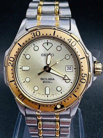 —// KUVAUS //—Malli: Seiko 5 SRPD65K4 Miesten automaattinen sporttinen sukelluskelloMateriaali: Ruostumaton teräs, gunmetal-harmaa Kellotaulu: Musta Kellotaulun koko: 41 mm ( ilman kruunua )Sovitus: Ranteen ympärysmitta jopa 22,0 cmLiike: Seiko 4R36 automaattiliikeVaraus: 40 tuntiaToiminnot: Aikaa osoittava, hacking, manuaali- ja automaattivenytys, viuhkansuuntaiset sekunnit, sukellus-rotatiivinen bezel, päivä ja päivämäärä näyttö, kaksoiskieli päivämääräpyörä—// TOIMITUSPAKETIN SISÄLTÖ //—Alkuperäinen laatikko: Kyllä * (Seiko-laatikko kuvatun kaltaisesti)Alkuperäiset paperit: Ei —// TILA //—Kotelon kuluminen: Ei / vähäinen * (ei merkittävää kulumaa, mahdollisesti pieniä hiusnaarmuja)Takakanteen kuluminen: Ei / vähäinen * (näyttökotelo)Kellokiven kuluminen: Ei Kellotaulun kuluminen: EiKädet: EiBezelin kuluminen: Ei / vähäinen Kruunun kuluminen: EiRannekkeen tai hihnan kuluminen (Kuvauksessa mainittu sopivuus): Vähäinen / Pieni * Seiko Canvas/Polyester NATO -remmit, pieni kuluma tekstiilissäTILANNE-ARVOSTUS STANDARDI:Ei ulkoista (Paras) > Vähäinen > Pieni > Kohtalainen > Raskas > Vaurioitunut (Kohdellisesti worst)— // KOKONAISARVOSTELU //—ARVOSTUS: A+ARVOSTELUOHJEISTUS:N - Uusi ilman näkyvää kulumaa.S - Lähes mint-kunto, ei kulumaa.A+ - Erittäin hyvä kunto, käytetty vähän kulumalle.A - Hyvä kunto pienillä kulumisen tai naarmujen merkeillä.B+ - Kohtalainen kunto selkeine kulumisen tai naarmujen merkeineen.B - Huono kunto raskaalla kulumisella tai naarmuilla.V - Yli 20 vuotta vanha ja vintage-kunto ilmeisine kulumisineen.ND - Pelastustila, ei toimintaa tai huollon tarpeessa. Puuttuvia osia saattaa olla.—// TOIMITUSMENETELMÄ //—PALVELIJA: FedEx Economy tai vastaava—[[[ ASIAKKAALLE LISÄTIEDOT ]]]—[KUVAT]- Kaikki kuvat ovat alkuperäisiä eivätkä retusoitu (sarjanumerot on piilotettu turvallisuussyistä). Kaikissa valokuvissa näkyvät reikiymöt eivät ole mainittuja puutteita, mutta ne huomioidaan kuvien mukaan. Valokuvat puhuvat tuhat sanaa, joten pyydämme katsomaan kuvat huolellisesti ennen tarjouksen antamista, koska ne muodostavat olennaisen osan kuvauksesta. Arvostan asiakassuhdettani, etten halua hylätyksi siitä syystä kun tuotteet saapuvat epätoivotuilla tuloksilla.[TARKKUUS]- Tarkkuus testataan jokaisella kellolla vesiliikkeessä (viisari kehä ylöspäin) täysin ladatun varaustilan ollessa voimassa, ja sen katsotaan olevan tyydyttävä ajan säilyttämiseen ennen lähettämistä. Ottaen huomioon tarkkuuteen vaikuttavia tekijöitä kuten ranteen käytön pituus, käsivarren liikkeet ja jousen jännitys, 10 vuotta vanhemmilla kelloilla voi olla suurempi tarkkuuden vaihtelu mekaanisen kulumisen vuoksi.[AITUUS]- Kaikki myymäni kellot ovat aitoja. Yritän merkitä kaikki vahvistettavissa olevat jälkimarkkinan osat parhaani mukaan. Arvioi tuotetta kuvien mukaan, koska kuvat ovat todellisen tuotteen ottamia. Kirjallinen kuvaus on lisätoiminto, kun kuvat eivät näytä vikaa täydellisesti. (poikkeuksena uutena olevat tuotteet, joista kuvat voivat olla lainattuja aiemmista listauksista).[KELLONHOITO-OHJE]- Kellon käyttö suihkussa tai kylvyssä ei ole suositeltavaa. Kova lämmin vesi ja saippua voivat heikentää tulppien tiivisteitä ja aiheuttaa vuotoa. Hämärtyminen (vesihöyry) on vähemmän tiheää kuin vesipisarat ja helpottaa kellon sisälle pääsyä. Älä käytä kelloa suihkun/veden aikana tai aseta sitä kosteaan ympäristöön (esim. kylpyhuoneessaa