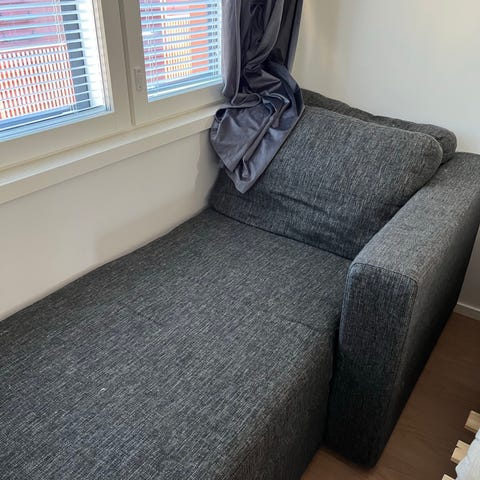 Sohvan vas puolelta puuttuu tukijalka, siksi annetaan. Kätevä rakentaa tukijalan siihen. Sohva tukeva, ei löhösohva.