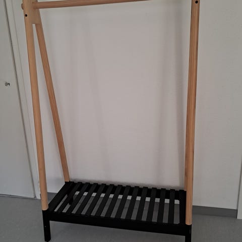Vaateteline JENNET kenkähyllyllä luonnonvärinen/musta. Vain pientä käytön jälkeä + yhdessä jalassa pieni kolhaisu. Siitä lähikuva.