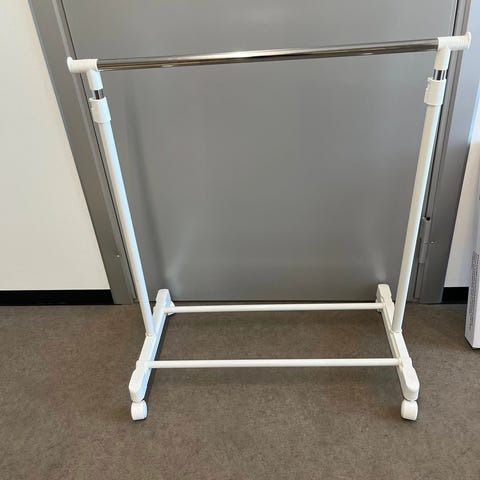 Hyvässä kunnossa vaaterekki. Pohja harmaa kiven jäljitelmä, muuten musta metallirunko.