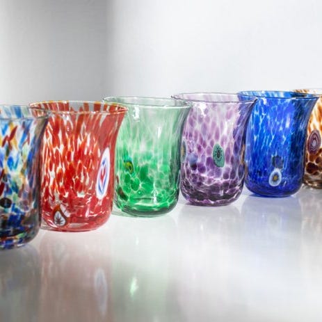 Harmoniaa, jossa säännöllisesti vuorottelevat lasin säteet ovat kokeneiden ja täsmällisten käsien ohjauksessa kuin renessanssimestari. Lasinalusenreunan ammattitaitoinen lõykkäys, jonka varaan huulet asettuvat ja jolla maistellaan herkkää hyvää viiniä. Liikkeet lasin luomiseksi toistuvat muuttumattomina, tänään kuin eilen. Ihme ja tämän lasin yksinoikeus säilyvät ajan yli. Esine, joka yhdistää tarkoituksen ja taiteen. Käsin valmistettu venetsialaisen perinteen mukaan puhkeavasta **lasista**, tämä kappale ilmentää Rieben nykyaikaista kieltä essenziaalin muodon ja syvien värien kautta. Rajoitettu tuotanto, jokaisessa kappaleessa on pienet vaihtelut, jotka todistavat sen ainutlaatuisuudesta. Allekirjoitettu Ribes. Aito italialainen taide-lasi.Nämä on toteutettu monivärisistä kanneista siten, että ne on asetettu ristikolle Efftreen Murano-kanneista. Ne ovat korkeaa laatua mestari Ballarinin lahjakkaan käden ansiosta. Ihanteellisia koristelemaan hienoa ja ylevää ruokailupöytää. Ne voi pestä astianpesukoneessa. Täydellinen lahjaidea.Päivittäinen teko, kuten vesilasillisen juominen, voi muuttua ainutlaatuiseksi, jos pidät käsissäsi mestarillisen teoksen, jolla on luonnetta ja persoonallisuutta. Juhlistasi tulee entistäkin juhlavampi, jos cocktailejasi tarjotaan Ribes the Art of Glass -laseista. Tässä tapauksessa laseille on maestro Angelo Ballarinin allekirjoitus, ja ne on valmistettu Muranoon filigraanirei’ityn tekniikalla, vanha venetsialainen tekniikka, joka vie meidät ajassa taaksepäin, jolloin Venezia oli täynnä artesanoita taiteilijoita, ja suojelijoita, jotka hallitsivat koko Eurooppaa. Kestäviä ja konepesun kestäviä. Täydellinen lahjaidea. Ribes-lasit ovat saatavilla upeassa ja turvallisessa pakkauksessa, jonka mukana on henkilökohtaiset terveiset, jotka tekevät siitä erityisen lahjan.