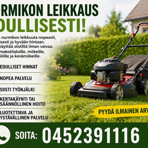 Noudetaan porin alueelta epäkunnossa olevat ruohonleikkurit pois nurkista pyörimästä. Voin maksaa tapauskohtaisesti 10e per leikkuri.