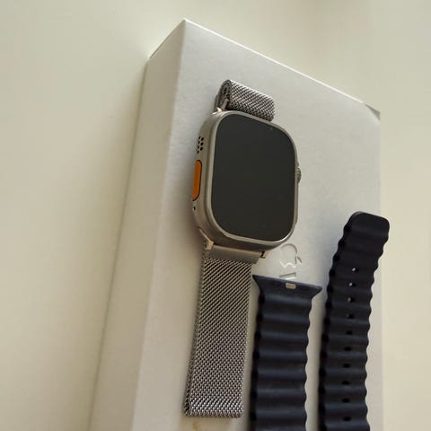 Mukaan tulee itse kello,alkuperäispakkaus, alkuperäinen laturin johto ja nippu rannekkeita.