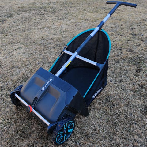Gardena lehtienkerääjä harjakärry pihan ja puutarhan puhdistukseen. Laite kerää lehdet ja roskat pyörivän harjan avulla säiliöön, jota voi tyhjentää takaa. Varustettu työntöaisalla, kahdella pyörällä ja kangasmallisella säiliöllä. Soveltuu esimerkiksi pihojen, käytävien ja laatoitusten siistimiseen kuivista lehdistä ja kevyestä roskasta.
