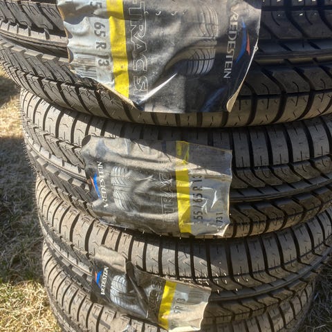 Yksittäinen asentamaton kesärengas. Ylivuotinen. Paisto 03/2021. Säilytetty valolta suojassa, ulkona vain kuvaamista varten.