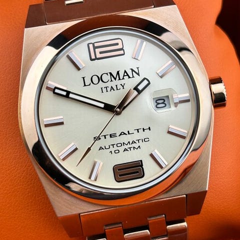 Merkki: LocmanMalli: Toscano AutomaticoLiike: AutomaattinenKotelo: 42 mm ilman kruunuaRannekkeen pituus: 22 cm yhteensäSolki: LogattuKellotaulu: HelmiäisTakakansi: Näkyvä/läpinäkyväKunto: UusiTakuu: Virallinen Locman-takuuVarusteet: Täysi setti