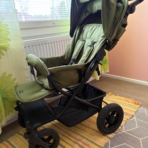 Rattaat on ostettu kesällä 2023 ja olleet aina säilytyksessä sisällä. Ei hajuja tai hometta, taloudessa ei ole lemmikkejä. Kaikki soljet ja kiinnitykset ovat ehjiä ja toimivat moitteettomasti. Myös työntöaisa on täysin ehjä.