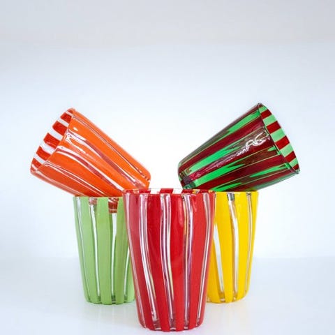 Tämä Ribesin käsin puhallettu esine yhdistää nykyaikaisen designin venetsialaisiin lasinvalmistuksen perinteisiin. Jokainen kappale on ainutlaatuinen, värin ja muodon vaihtelu heijastavat tekijän elettä. Toiminnallinen mutta veistoksellinen, ihanteellinen keräilijöille ja tiloihin, joissa arvostetaan nykyaikaista käsityötä. Allekirjoitettu Ribes. Italialainen taidelasi. Rajoitettu tuotantoEleganti, raffinati, resistenti..Splendidi pöytälasit lasista kristallinvärisinä kuten vanhan venetsialaisten lasimestareiden reseptin mukaan. Valmistettu myöhemmin venetsialaisten mestarilasimestareiden toimesta. Turvallinen pakkaus, ihanteellinen ravintoloille ja baareille. Ne ovat erittäin toivottuja lahjoina. Lasit ovat kestäviä ja ne voi pesuastianlaitteessa pestä.