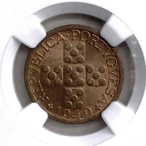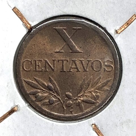 Portugali. 10 Centavos Bronze Coin 1948 ()