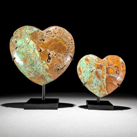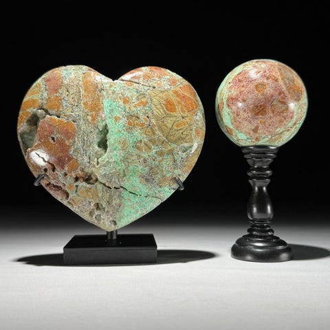 Ei lähtöhintaa - Upea vihreä Smithsonite -pari. Sydän ja Pallo räätälöid