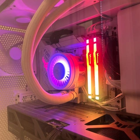 Tähän on käytetty taiteellista silmää ja tyylitelty emolevyn oransseja aksentteja oransseilla kaapelinjatkeilla.