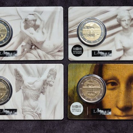 2 euroa Ranska 2025 Louvre neljässä coincard-setissä2 euroa Ranska 2025 Louvre Amour en Psyche coincard (I)2 euroa Ranska 2025 Louvre Venus de Milo (II)2 euroa Ranska 2025 Louvre Victory of the Samothrace (III)2 euroa Ranska 2025 Louvre Mona Lisa (IV)Painosmäärä: 315 000 (75 000 per coincard, 10 000 proof ja 5 000 reverse proof)Pieni painosAlkuperäisessä tilassa kuten Monnaie de Paris on julkaissutKuvista näet oman vaikutelman.