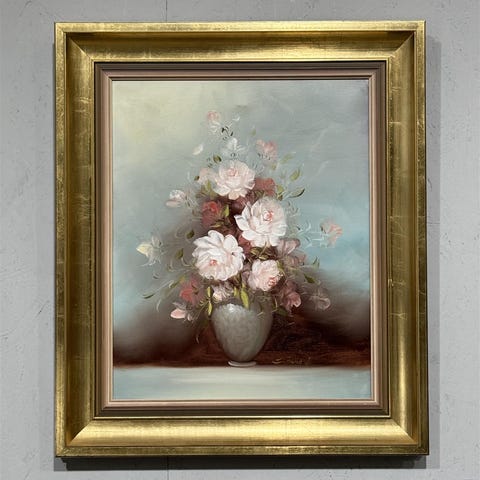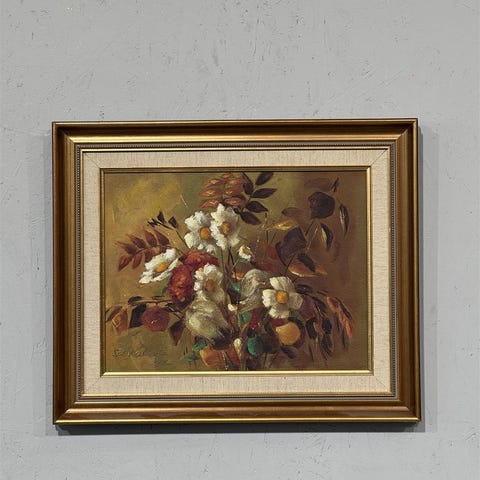 Hakusanat: taide, Paketoitava, öljyvärimaalaus, 1990-luku, kukka-asetelma, suomalainen taide, kehystetty maalaus, s.l. kalima